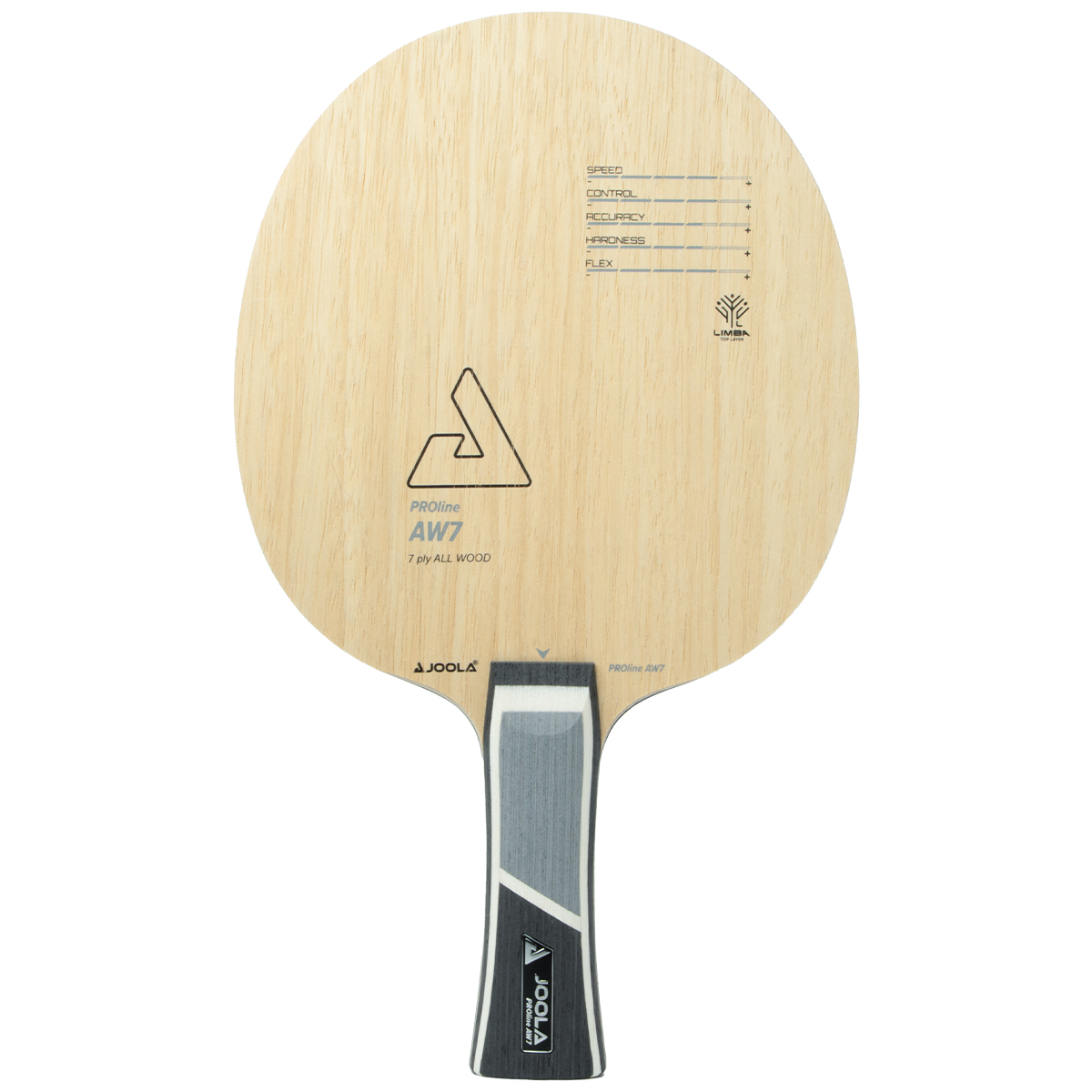 Das 7-schichtige Vollholz erzeugt auch ohne Carbon maximale Power. Grund dafür sind die beiden geschwärzten Kiri Innenfurniere, welche zusammen mit dem Kernfurnier ein besonders stabiles Fundament bilden. Ayous und Limba Schichten vervollständigen diesen außergewöhnlichen Mix an Furnieren und erzeugen einen extrem dynamischen und gleichzeitig gefühlvollen Touch. Die Gesamtdicke von 6,9mm und das Gesamtgewicht von 90g bieten auch Profis jederzeit die Stabilität und Power, die sie für feste Angriffsbälle benötigen. Mit absolut überzeugender Verarbeitungsqualität und einem perfekt abgestimmten Design mit schwarzen Kiri Furnieren und einem schwarz/grauen Griffdesign spielt sich das PROline AW7 in die Herzen aller Offensivspieler, die ein Powerholz ohne Carbon suchen. Das Vollholz bietet eine starke Ballrückmeldung, Flexibilität, einen hohen Bogen bei Topspins und ein absolut natürlich Spielgefühl.