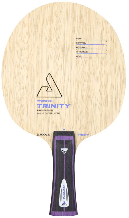 Stelle dir ein Holz vor, welches Dynamik, Gefühl und Präzision vereint. Das Herzstück des VYZARYZ TRINITY ist das X3, ein hochmodernes und innovatives Kunstfasergewebe, welches ein neues Kapitel im Bereich Tischtennishölzer öffnet. Horizontale Schichten aus PBO-C & Carbon werden mit vertikalen Schichten aus Arylat und Carbon (AL-C) verwebt. Diese Kombination bewirkt ein einzigartiges Zusammenspiel der beeindruckenden Dynamik des AL-c und den einzigartigen Spieleigenschaften des PBO-c. Das Limba-Außenfurnier verleiht jedem Schlag zudem einen speziellen Touch. Das JOOLA VYZARYZ TRINITY liefert deinem Spiel den X3 Boost!