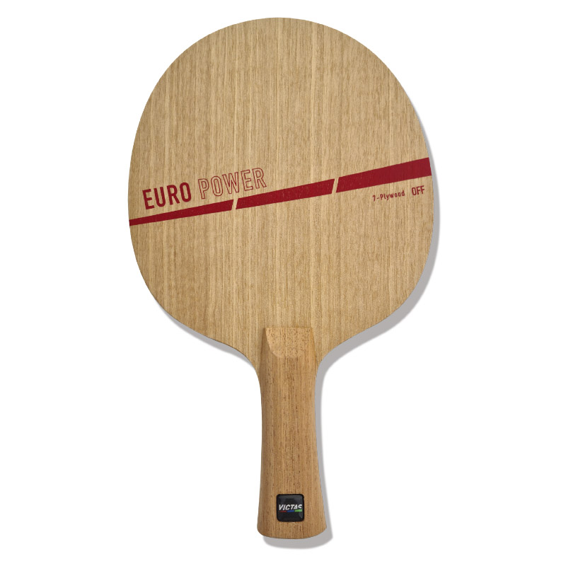Das EURO POWER OFF ist ein 7-schichtiges Offensivholz für ambitionierte Angriffsspieler. Der klassische Furnieraufbau ist perfekt für ein druckvolles Topspinspiel, sowohl am Tisch, als auch aus der Halbdistanz, geeignet. Die 4 elastischen Außenfurniere verbessern das Ballgefühl und sorgen zudem für ein enormes Spinpotential beim Topspin. Die 3 inneren, etwas härteren Mittelfurniere sind schneller ausgelegt, wodurch besonders der Tempoverlust des Plastikballs ideal kompensiert wird. Das ausgezeichnete Spielgefühl und erstklassige Handling des Holzes wird durch den edlen Griff aus feinstem "Premium-Cypress"-Holz noch weiter verstärkt. Das EURO POWER OFF ist ein exklusiv für Europa entwickeltes Qualitätsholz mit idealen Spieleigenschaften für das druckvolle Topspinspiel.