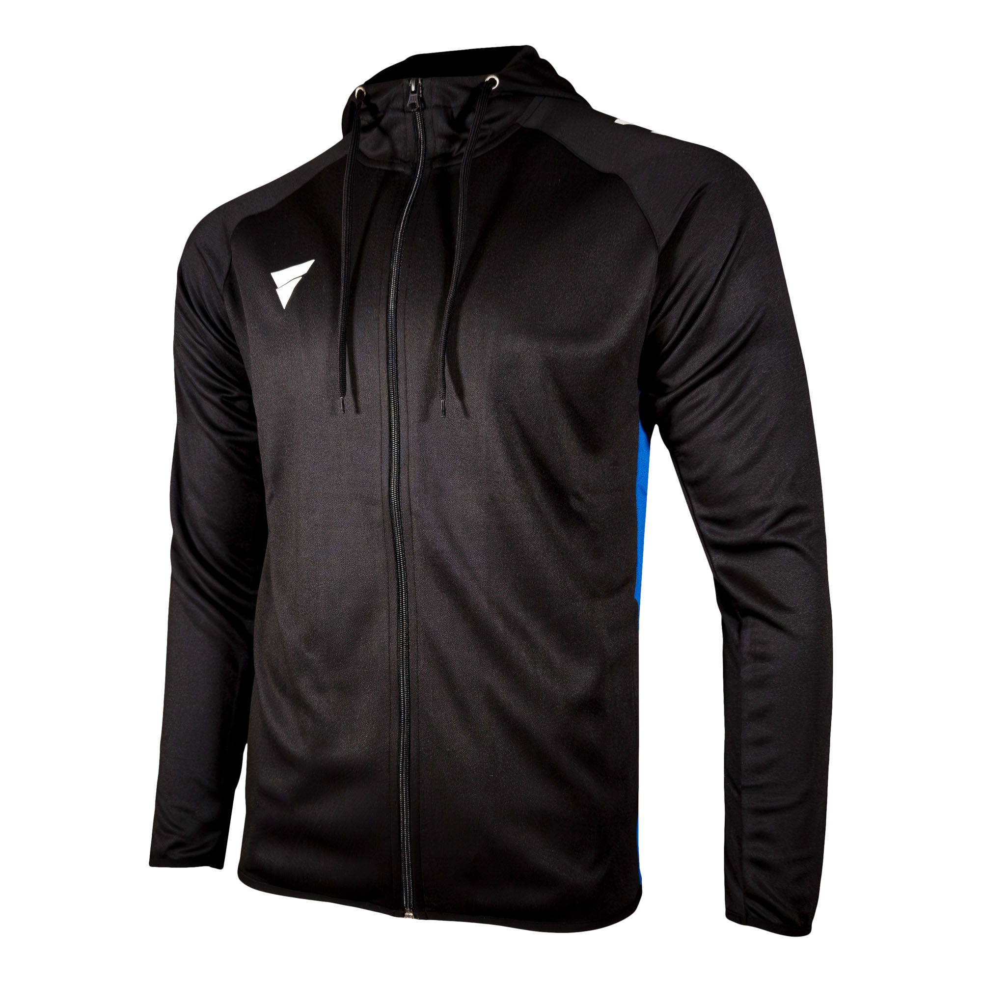 Premium Trainingsjacke mit Kapuze aus besonders hochwertigem und elastischem Funktionsmaterial. Die Trainingsjacke ist mit dem sportlichen Schnitt sowohl für das Training als auch für die Freizeit optimal geeignet. Die praktischen Seitentaschen mit Reißverschluss unterstreichen die Funktionalität. VICTAS Schriftzug auf der linken Schulter.