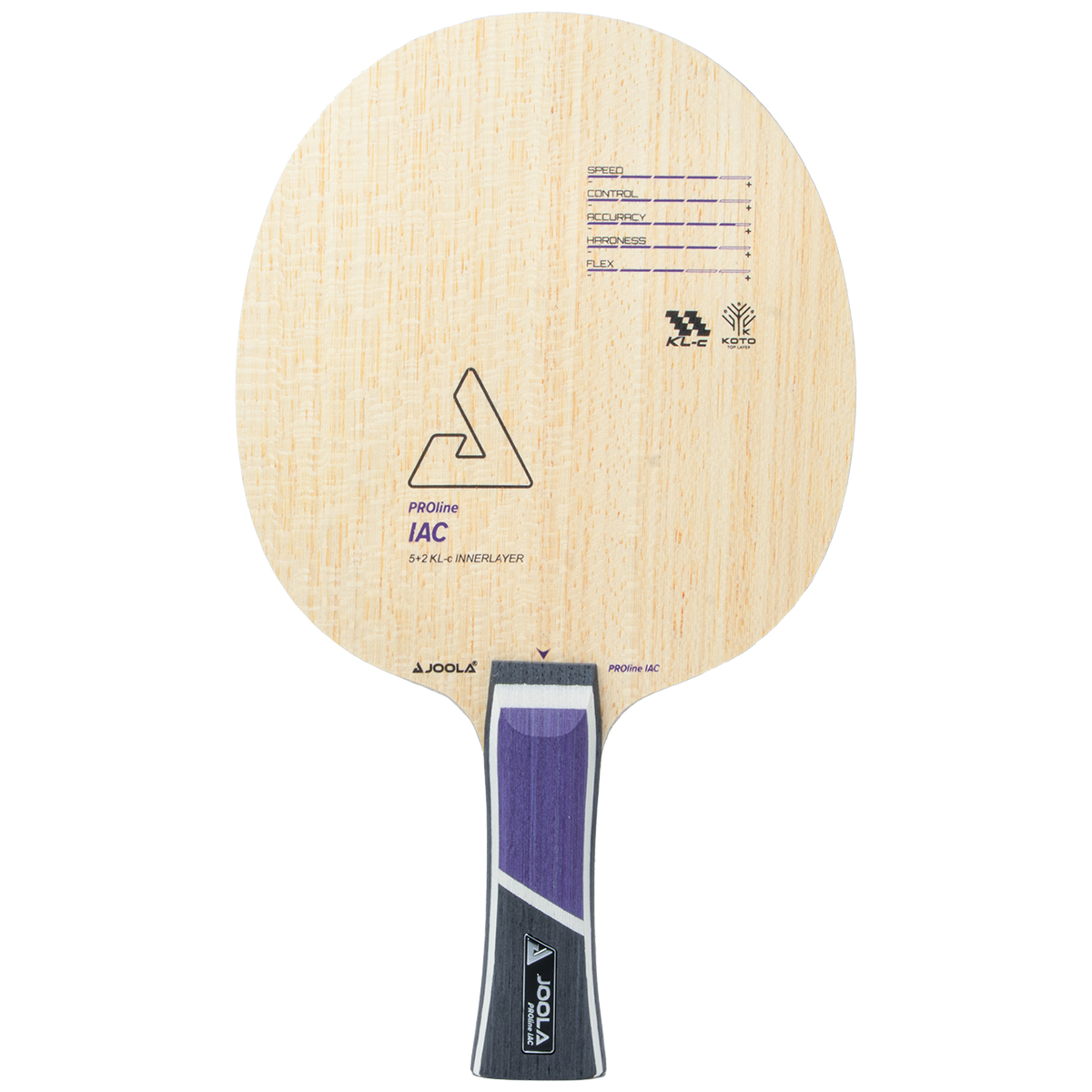 Das PROline IAC sticht aus der JOOLA Hölzer Serie heraus, da es das einzige Modell ist, welches ein Koto Außenfurnier mit innen liegenden Carbon Schichten vereint. Diese Kombination erzeugt ein äußerst interessantes Spielgefühl, denn es vereint Härte und Direktheit mit einer etwas längeren Ballkontaktzeit. Das knackige Koto Außenfurnier erzeugt jederzeit einen direkten Touch und unterstützt ein aggressives Topspinspiel. Die innen liegende KL-c Schicht sorgt für Festigkeit und ein erhöhtes Grundtempo. Gleichzeitig kann der Ball beim Treffpunkt jedoch etwas tiefer in das Holz einsinken und ermöglicht dem Spieler dadurch ein fehlerverzeihenderes Spiel. Optimal eignet sich das Holz daher für fortgeschrittene Spieler, denen die klassischen Koto/outer Carbon Hölzer zu hart und steif sind. Eine außergewöhnlich hochwertige Verarbeitung und das niedrige Gewicht von 85g runden das exklusive Gesamtpaket des PROline IAC ab.