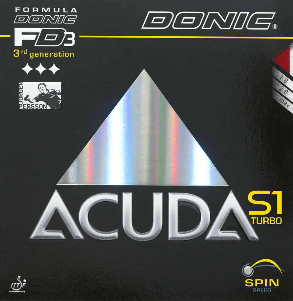 Die Turbo-Version der ACUDA-Serie überzeugt durch den maximalen eingebauten Frischklebeeffekt mit noch mehr Dynamik und Katapult. Bereits kurz nach ihrer Markteinführung entwickelten sich die ACUDA-Beläge zu einem Welterfolg. Um auch für das Niveau absoluter Topspieler einen Belag dieser Spitzen-Technologie anbieten zu können, hat DONIC seine Bestsellerserie ausgebaut: ACUDA S1 mit eingebautem Turbo! Der DONIC ACUDA S1 Turbo besticht durch seine Präzision bei Ballwechseln auf höchstem Tempolevel. Trotz seines kraftvollen Katapulteffekts und der unübertroffenen Dynamik spürt man den Ball perfekt und hat so das Gefühl früherer Frischklebezeiten. Die ausgereifte Technologie verleiht diesem High End-Belag auch bei harten Topspins deutlich mehr Länge – trotz eines hohen Bogens.