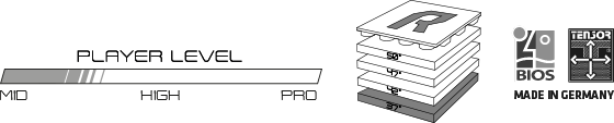 Spielfreude, bunte Spin-Variationen, Abdecken aller Distanzen zum Tisch - so lautet das Einsatzgebiet des RASANTER R37. Für Spieler aller Klassen, die schon mit leichter Beschleunigung das volle Spinpotenzial des RASANTER R37 aktivieren möchten.